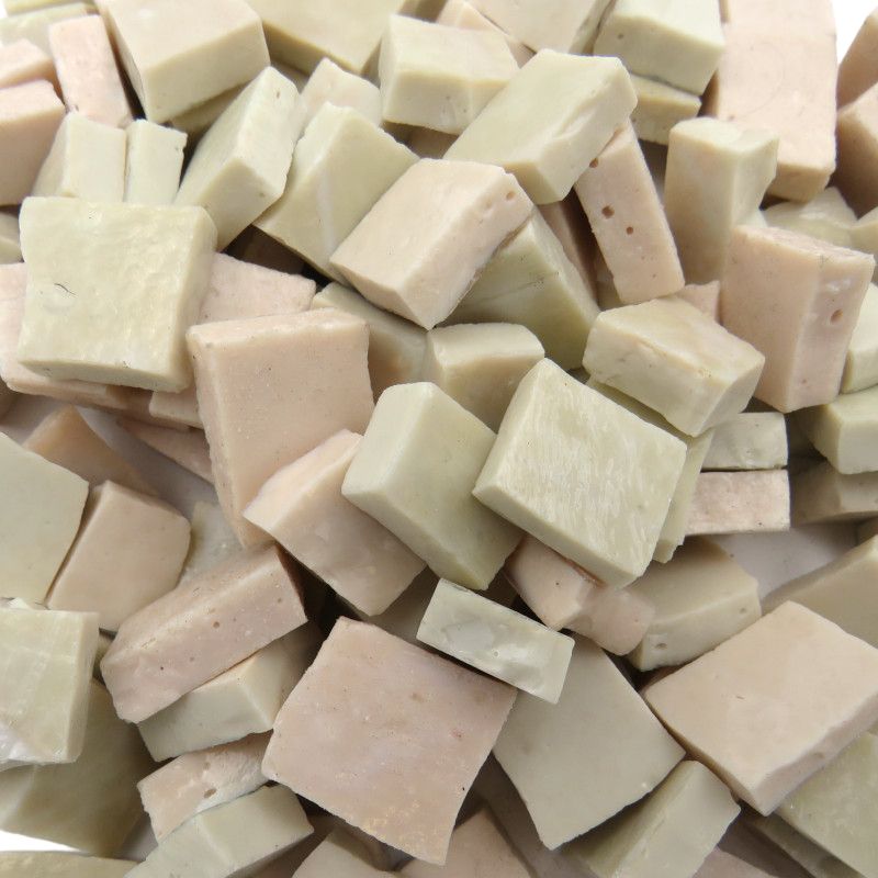 Entdecken Sie dieses besondere Smalti der Familie Perdomo aus Mexiko – ein einzigartiges Produkt, das traditionelle Murano-Methoden mit lokalen Zutaten und Mineralien kombiniert. Das Glas wird in 'Tortillas' gegossen, anschließend vertikal von Hand mit Hammer und Hardie geschnitten, um Tesserae von etwa 12-15 mm Länge und 5-7 mm Dicke zu erzeugen, auch bekannt als Piastrine in der klassischen Welt der italienischen Mosaike. Was dieses mexikanische Smalti besonders macht, ist, dass es dünner ist als die italienische Variante, was die Verarbeitung erheblich erleichtert. Außerdem hat mexikanisches Smalti den einzigartigen Vorteil, zwei Seiten mit subtilen Farb- und Texturvariationen zu besitzen. Das bedeutet, dass Sie eine größere Farb- und Oberflächenauswahl genießen können, aber auch, dass es größere Chargenunterschiede pro Farbe geben kann. Kaufen Sie also genug für Ihr Projekt. Dank der größeren Oberfläche jedes Stücks entsteht innerhalb eines Farbtons eine wunderschöne marmorierte Farbvariation. Für das beste Ergebnis wird empfohlen, sie mit einer Fliesenzange zu schneiden, wie zum Beispiel Leponitt.