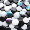 Discover our collection of round tiles and tiles in different sizes and designs, perfect for adding originality to your mosaic works. Whether you are looking for small round mosaic tiles for fine details, or larger round tiles to make a statement, you will find a wide range of options with us. Choose from different colours, textures and finishes to bring your creative vision to life. With these versatile round tiles, you can create unique patterns and designs that really make your mosaic works stand out.   Discover the perfect flat round tiles that have the same thickness as our glass mosaic, namely 4mm. These tiles are manufactured by melting recycled glass powder and mineral oxides, resulting in beautiful and highly durable glass tiles. They can be effortlessly and accurately cut with glass cutters and can be seamlessly combined with other tile types from the shop. Moreover, they have the same height as the 20x20mm glass mosaic tiles. They are perfectly shaped circles, uniform in size, shape and finish. They are exceptionally strong and available in both a regular finish and with a beautiful pearlescent shine. These tiles offer endless possibilities for your creative projects.